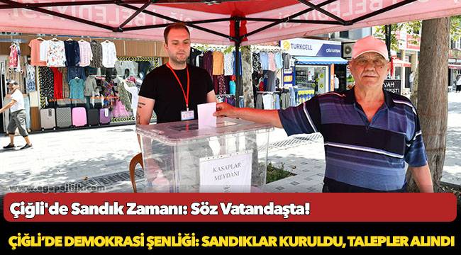 Başkan Utku Gümrükçü öncülüğünde geçtiğimiz yıllarda mahalle muhtarlıklarına sandık kurarak yerel yönetimlerde demokrasinin güçlendirilmesi adına bir ilke imza atan Çiğli Belediyesi, aradan geçen bir yılın ardından 26 mahallenin yanı sıra kentin en işlek noktalarına yeniden sandıklar kurdu. 23-24-25 Haziran tarihlerinde kurulu olan sandıklara giden vatandaşlar ikamet ettikleri mahalle ve kentin geneliyle ilgili istek, şikayet ve önerilerini sandığa taşıdı.