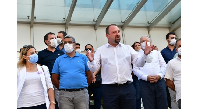 Sendika yetkilileri ile bir araya gelen Çiğli Belediye Başkanı Utku Gümrükçü varılan anlaşma sonrası belediye önünde toplanan işçilere açıklama yaptı.