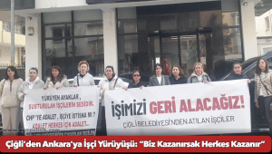 “Bizler Çiğli Belediyesi’nden çıkarılan kadın emekçiler olarak, 1 Mayıs’ta işçi sınıfının birlik ve mücadele gününde Çiğli Belediyesi önünden Ankara’ya, CHP Genel Merkezi önüne yürüyeceğiz. Bu yürüyüş, işçiden yana olmayan tüm siyasilere karşı bir sınıf yürüyüşüdür. Buradan tüm işçi arkadaşlara sesleniyorum: Sesimiz olun, yanımızda olun. Biz kazanırsak herkes kazanır.”