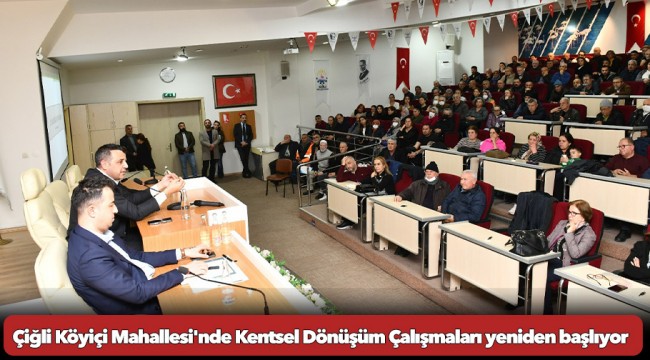 Çiğli Belediyesi’nin ev sahipliğinde Meclis Salonu’nda düzenlenen toplantıya Çiğli Belediye Başkanı Onur Emrah Yıldız’ın yanı sıra başkan yardımcıları, birim müdürleri, meclis üyeleri, Köyiçi Mahalle Muhtarı Ahmet Çelik ve çok sayıda Köyiçi Mahallesi sakini katılım gösterdi. Başkan Yıldız, toplantıya katılan vatandaşların kentsel dönüşüm planlamasıyla ilgili sorularını tek tek dinleyip, cevapladı.