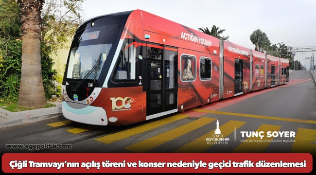 İzmir Büyükşehir Belediyesi’nin yapımını tamamladığı Çiğli Tramvayı bugün saat 16.30’da Çiğli 8955 Sokak üzerinde düzenlenecek törenle hizmete girecek. Etkinlik süresince yapılacak trafik düzenlemeleri kapsamında;