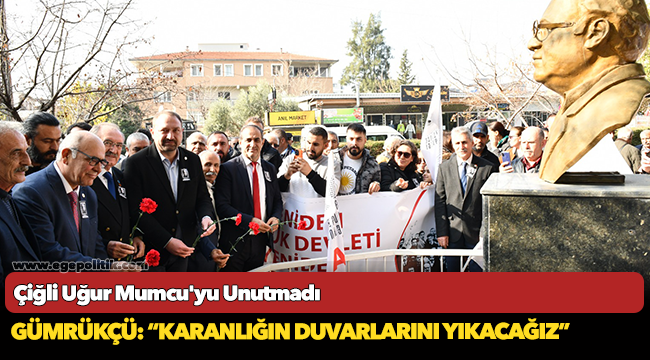 1993 yılında Ankara’da evinin önünde uğradığı bombalı saldırı sonucunda yaşamını kaybeden araştırmacı gazeteci Uğur Mumcu, Uğur Mumcu Mahallesi’nde heykelinin başında anıldı. Anma törenine Çiğli Belediye Başkanı Utku Gümrükçü, meclis üyeleri, STK temsilcileri, muhtarlar ve çok sayıda vatandaş katıldı. Törene katılanlar saygı duruşu ve İstiklal Marşı’nın okunmasının ardından Uğur Mumcu heykeline karanfil bıraktı.