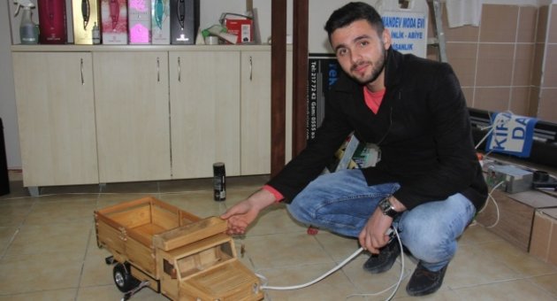 Orta öğretimini mobilya üzerine tamamladığını dile getiren Ayder “Lisede mobilya okudum. Zaten böyle şeylere hevesim var yani elimde yatkın böyle işlere. Biraz da elektrik elimden geliyor. Elektrikten de anlıyorum. Hiç yardım almadım. Hep kendim yaptım. Her şey bana ait. Yaparken de eskilerin en beğenilen kamyoneti damperli Bedford'dan esinlendim. Damperi yapmak ta zor olmadı aslında. Nasıl yapacağımı düşündüm. Arabanın krikolarından yola çıkarak böyle bir şey çıkardım ortaya” diye konuştu.
