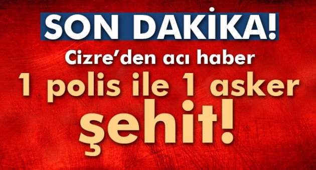 Edinilen bilgiye göre operasyonların devam ettiği Cizre'de şiddetli çatışmalar sürüyor. Cizre ilçesinde hendek kazıp barikat kuran ve vatandaşların can güvenliğini tehlikeye atan teröristlere yönelik operasyonlar devam ediyor. Devam eden operasyonlarda Cudi Mahallesi'ne giren güvenlik kuvvetlerine teröristler tarafından saldırı düzenlendi. Teröristlerin saldırısı sonucu ağır yaralanan 1 polis özel harekat ile 1 asker kaldırıldıkları Cizre Devlet Hastanesi'nde yapılan tüm müdahalelere rağmen kurtarılamayarak şehit düştü.