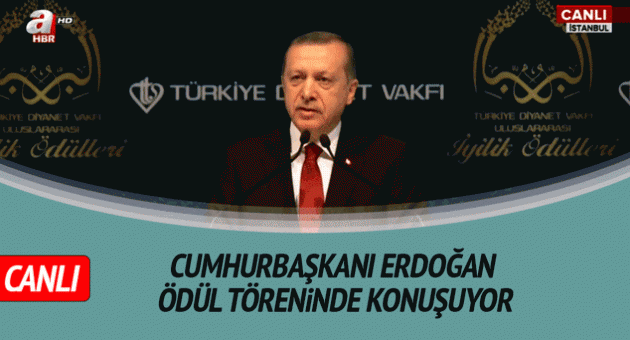 Cumhurbaşkanı Recep Tayyip Erdoğan, Haliç Kongre Merkezi'nde, Tu¨rkiye Diyanet Vakfı Uluslararası I·yilik O¨du¨lleri töreninde konuşuyor.