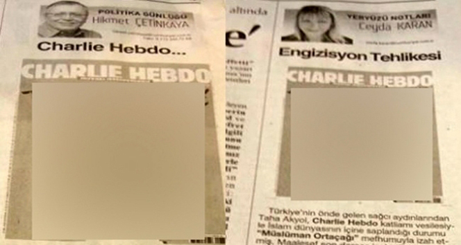 Cumhuriyet Gazetesi yazarları Hikmet Çetinkaya ve Ceyda Karan'ın 14 Ocak tarihli köşe yazılarında, Fransa'da faaliyet gösteren "Charlie Hebdo" Dergisi'nde yayımlanan Hz. Muhammed'e ait olduğu iddia edilen, karikatüre yer vermeleri nedeniyle açılan davanın görülmesine devam edildi.