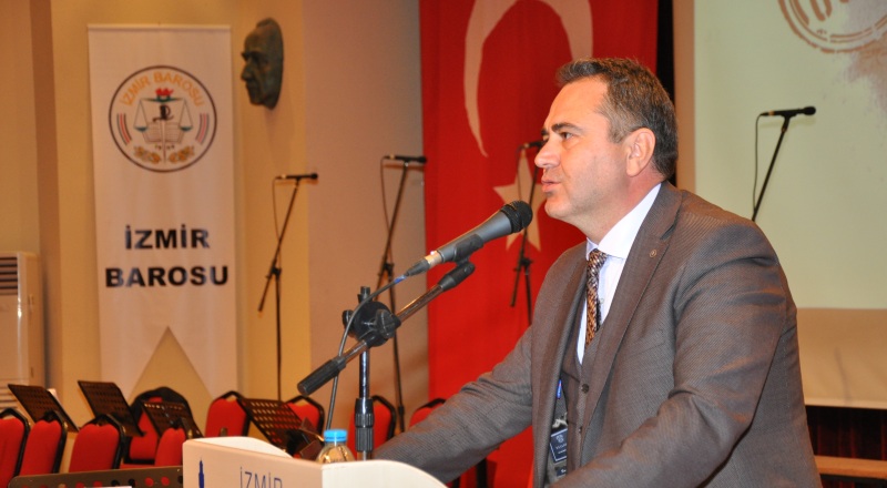 Ardından konuşan İzmir Barosu Başkanı Av. Aydın Özcan sözlerine; “İfade ettikleri gerçeklerin bedelini canlarıyla ödeyen, mesleğini yaparken haklarında davalar açılan, soruşturmalara uğrayan gazetecilerin olduğu bir ülkede düşünce ve ifade özgürlüğünden bahsetmek mümkün olmayacaktır” diyerek başladı. Anayasamızın öngördüğü çizgide; demokratik, laik, sosyal hukuk devletinin tüm ölçütleriyle yaşama geçmesi, tüm bireyler, kurumlar arasında, barış, kardeşlik, huzur, güven, karşılıklı sevgi ve saygının gerçekleşmesi, sorunların çözümünde, karşıt görüşler ortaya konulurken demokrasinin gereği olan tartışma ortamının sağlanması dileği ile konuşmasına devam eden Özcan, ‘Anayasal devlet’ anlayışına göre devletin, kutsal bir varlık olmadığını; insani ve hukuki bir kurum, yani bir hizmet organizasyonu olarak örgütlenmesi gerektiğini ve meşruiyetini, insan haklarından, halkın egemenliğinden alan bu devlet biçiminde şeffaflık ve sivilliğin esas olması gerektiğini belirten Av. Aydın Özcan düşünce özgürlüğü, ifade özgürlüğü, basın özgürlüğü, yargı bağımsızlığı ve hukukun üstünlüğü gibi değerleri içselleştirdiğimizde ancak gerçek anlamda bir demokrasiye ve Mustafa Kemal Atatürk’ün işaret ettiği muasır medeniyetler seviyesine ulaşabileceğimizi söyledi. Dünya üzerinde birçok demokratik sıralamada sonlarda olduğumuzu söyleyen Özcan örgütlü bir toplum olmayı becerebilseydik sıralamalardaki yerimiz bu kadar üzücü ve düşündürücü olmayacaktı dedi. Demokratik bir toplumdan bahsedebilmek, ifade ve örgütlenme özgürlüğünün tam olarak sağlanması ile mümkündür diyen Özcan, bunun için hem devlet hem de toplum katında “örgütlenme özgürlüğü kültürünün” oluşması gerektiğini belirtti. Özcan sözlerini şöyle tamamladı: “Özgürlük mücadelesinde insan haklarından yana tavır alan ve bu yönde hak mücadelesi veren biz avukatlar ve Barolar bugün de aynı onurlu mücadelenin içerisinde olduğumuzu ifade etmek isterim. Bu mücadelede fikren ve ruhen daha zinde, daha güçlü olmamız için insan hakları konusunda mücadele yürüten yurttaşlarla, sivil toplum kuruluşları ve meslek örgütleriyle argümanlarımızı ve güçlerimizi birleştirmek, güçlenmek ve ortak mücadele ile hareket etmek zorundayız. İzmir Barosu kurulduğu tarihten bu güne yürüttüğü temel hak ve özgürlük mücadelesini yılmadan devam ettireceğiz. Uğur Mumcu ve onun şahsında tüm demokrasi şehitlerimizi rahmetle anıyoruz.”