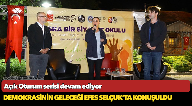 Helin Şahin’in moderatörlüğünde düzenlenen Demokrasinin Geleceği başlıklı açık oturuma Başka Bir Siyaset Okulu öğrencileri, Efes Selçuk Belediye Başkanı Filiz Ceritoğlu Sengel ve Efes Selçuklular da katılım gösterdi.