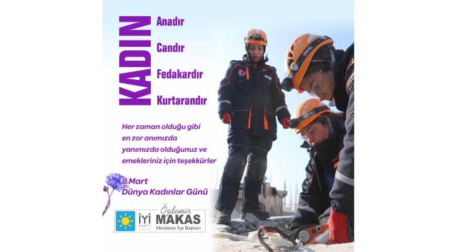 İyi Parti Menderes İlçe Kadın Politikaları Başkanı Makbule Pehlivan, 8 Mart Dünya Emekçi Kadınlar Günü dolayısıyla deprem bölgesinde büyük emekler veren kadınlar için mesaj yayımladı.