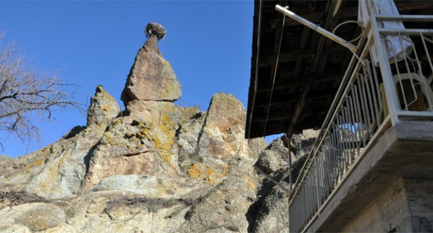 Çarkacı kırsal mahallesi sakinlerinden Nurettin Can, adeta kaya ile birlikte yaşıyor. Tonlarca ağırlığındaki kayanın hemen önünde bulunan evinde yaşayan Can, bu zamana kadar hiç korkmadıklarını, kayadan da bir zarar görmediklerini söyledi. Can, "Leylekler gelir buraya her sene. Yuvaları da yukarıda zaten. Bizim için bir tehlikesi yok. Biz kayamızın yıkılmasını istemiyoruz, tamir edilmesini istiyoruz" dedi.