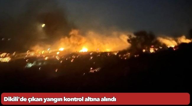Dikili'de dün 23.30'da Çandarlı ile Denizköy mahalleri arasında otluk alanda başlayıp makilik ve zeytinlik alana sıçrayan yangın İzmir İtfaiyesi'nin desteği ile bu sabaha karşı kontrol altına alındı. İzmir İtfaiyesi'nden 7 arazöz, 6 tonaj araç, 1 merdivenli araç, 55 personel, İzmir Büyükşehir Belediyesi'nin diğer birimleri ve ilçe belediyelerin desteğiyle çok sayıda iş makinası ve su tankeri ile yangına müdahale edidi. Orman İtfaiyesi ile birlikte koordineli çalışılarak yangın sabaha karşı kontrol altına alındı. Bölgede soğutma çalışmalarının devam ettiği bildirildi.