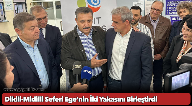 Ege’nin iki yakasını birleştiren bu önemli girişiminden dolayı Başkan Kırgöz’e teşekkür eden Midilli Belediye Başkanı Panayotis Christofas şu açıklamalarda bulundu “Bu sabah Dikili-Midilli seferinin ilk gününde mevkidaşlarım Dikili Belediye Başkanı Adil Kırgöz, Kınık Belediye Başkanı Sema Bodur, Bergama Ticaret Odası Başkanı Lütfi Kolat ve ilk ziyaretçilerimizi karşılamaktan çok mutluyuz. Bu iş birliğini daha da güçlendirmeye hazırız. Bizim tarafımızdan da haftada üç dört kez başlayıp yaz döneminde her gün gerçekleşecek yeni seferlere destek olmak katkı sunmaya devam edeceğiz.