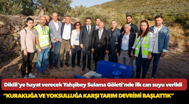İzmir Büyükşehir Belediye Başkanı Tunç Soyer’in “Başka Bir Tarım Mümkün” vizyonu doğrultusunda, tarımda doğru sulama yöntemlerinin kullanımı için inşaat çalışmaları devam eden Dikili Yahşibey Sulama Göleti İletim Hattı’nın tanıtım toplantısında ilk etabın suyu verildi. Dikili’nin Yahşibey ve Bademler mahallelerinde toplam 7 bin dekarlık bir alana hizmet verecek proje, yüksek basınçlı damlama sulama sistemiyle tarlalara bereket olacak. Dikili Yahşibey Sulama Göleti tam kapasiteyle çalıştığında 545 çiftçiye can suyu olacak. Yahşibey’de düzenlenen tanıtım toplantısına İzmir Büyükşehir Belediye Başkanı Tunç Soyer, Dikili Belediye Başkanı Adil Kırgöz, İzmir Büyükşehir Belediyesi Genel Sekreteri Barış Karcı, İZSU Genel Müdürü Ali Hıdır Köseoğlu, muhtarlar, meclis üyeleri, sivil toplum kuruluşu temsilcileri, kooperatif üyeleri ve çok sayıda çiftçi katıldı.