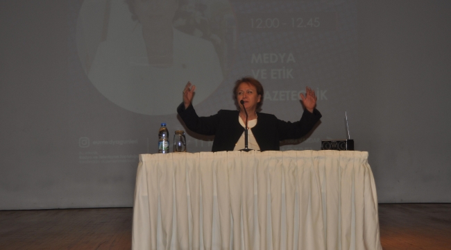 Konuşmanın sonunda İzmir Gazeteciler Cemiyeti Başkanı Misket Dikmen’e, Ege Üniversitesi Medya Uygulama ve Araştırma Merkezi Müdürü aynı zamanda İletişim Fakültesi Radyo Televizyon ve Sinema Bölüm Başkanı Prof. Dr. Dilek Takımcı tarafından “Teşekkür Plaketi” verildi.
