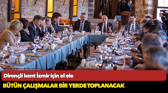 İzmir Büyükşehir Belediye Başkanı Tunç Soyer ilçe belediye başkanlarıyla “Afete Hazırlık ve Kentsel Dirençlilik” ile ilgili koordinasyon toplantısında bir araya geldi. İzmir Afet Risk Yönetim Vakfı ile ilçe belediyeleri bünyesinde arama kurtarma takımları kurulması kararının alındığı toplantıda konuşan Soyer, “Bu işbirliğimiz ve heyecanımızla çalışırsak biz Türkiye’nin depreme en dirençli kenti haline gelebiliriz. Türkiye’nin bunu duymaya, bunu görmeye ihtiyacı var” dedi.