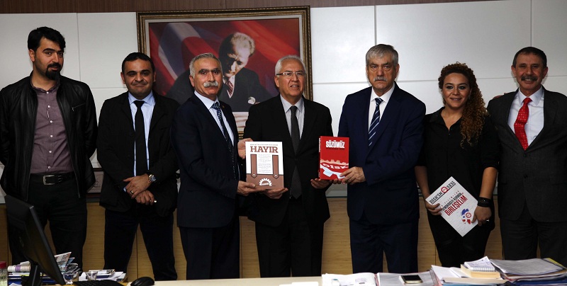 Türkiye Devrimci İşçi Sendikaları Konfederasyonu(DİSK) Genel Başkanı Kani Beko, Karabağlar Belediye Başkanı Muhittin Selvitopu’nu makamında ziyaret etti. Başkan Beko, son yaşanan toplu iş sözleşmesi kapsamında yapılan grevi olgunlukla karşılayıp anlaşarak sonuçlandıran Başkan Selvitopu’na demokratik duruşu nedeniyle teşekkür etti. Kani Beko ve sendika temsilcileri Başkan Selvitopu’na referandum’da neden “Hayır” oyu vereceklerini anlatan bir de kitap hediye etti.