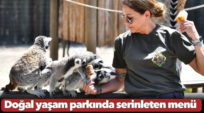 İzmir Büyükşehir Belediyesi’nin 425 bin metrekarelik alan üzerine kurduğu Doğal Yaşam Parkı’nda hava sıcaklıkların artması ile birlikte hayvanların beslenmesinde serin menüye geçildi. Buz kalıplarında dondurulan meyveler, park sakinlerinin serinlemesi için alternatif olarak sunuluyor. Halka kuyruklu lemurlar için de fındık, dut, kayısı ve badem gibi besinler buz kalıplarında dondurularak servis ediliyor. Park sakinleri, buzlu meyveleri yiyerek serinliyor.