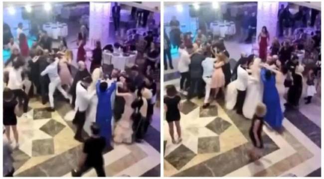 Bayrampaşa'da, düğünde istek şarkı yüzünden çıkan tartışma sonucu damadın ve gelinin yakınları kavga etti. Cep telefonuyla kaydedilen kavga karakolda bitti.