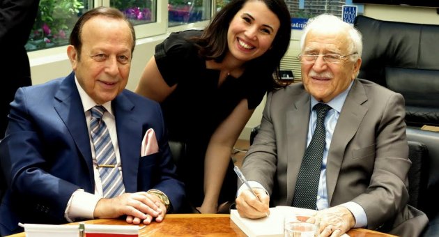 Kaya Erdem’in Yılmaz Ulusoy’u ziyarete geleceğini duyan Holding çalışanları, Kaya Erdem’in yazdığı “Demokrasinin ilk 50 yılı” kitabını satın alarak imzalattılar... Holding çalışanlarının bu anlamlı sürprizi Kaya Erdem’i çok duygulandırdı... Siyasetin önemli ismi tüm çalışanlara kitabını tek tek imzalarken bol bol da resim çektirdi.