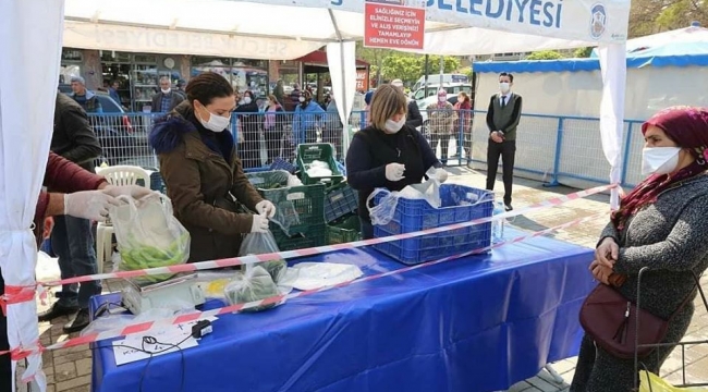 Koronavirüs ile mücadele sürecinin halkı sağlık açısından olduğu kadar ekonomik açıdan da etkilemesi sebebiyle kurulan Efes Selçuk Halk Pazarı’nda gerekli hijyen ve fiziki mesafe ile ilgili tedbirler alınıyor. Vatandaşların memnuniyetle karşıladıkları Efes Selçuk Halk Pazarı’nın açıldığı ilk günden bu yana tezgâh başına geçen Başkan Sengel; bu hafta da vatandaşlar için pazardaydı. Sağlıklı sebze ve meyvelerin, uygun fiyata tüketiciyle buluştuğu pazarda Başkan Sengel’in yanı sıra kurum müdürleri ve çalışanlar da vatandaşlar için meyve sebze tarttı. Sağlıklı bir ortamda alışveriş yapılabilmesi için, pazara gelen vatandaşlar belirli bir sayıyı aşmayacak şekilde alana alınıyor. Maskesiz vatandaşın alınmadığı pazarda ateş ölçümleri yapılarak; vatandaşlara el dezenfektasyonu veriliyor.