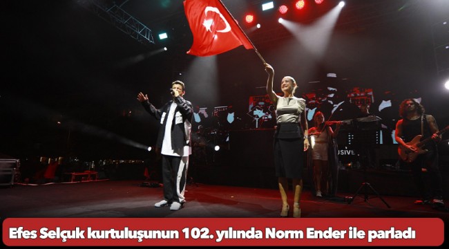 Belediye Başkanı Filiz Ceritoğlu Sengel Türk bayrağı ile sahneye çıkarak; “Norm ender ile gurur duyuyoruz. Biz hep söyleriz; “Efes Selçuk İlham Veren bir kent” diye. İlham veren kentin ilham veren çocukları ve gençleri var. Norm Ender de bu kentin bir evladıdır, Efes Selçukludur. O yüzden Efes Selçuk’un kurtuluş gününde 100. Yıl marşıyla daha da büyük gurur duyduğumuz Norm Ender bizimle olsun” dedi.