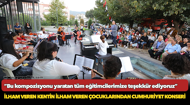 İsabey Gündüz Bakımevi’nin küçük yeteneklerinin “Cumhuriyet ve Atatürk” temalı gösterisinin ardından konuşan Efes Selçuk Belediye Başkanı Filiz Ceritoğlu Sengel, tüm çocuklara, annelerine ve tüm müzik eğitmenlerine teşekkür ederek; “Prof. Dr. İsmail Aka Kütüphanesi ve İsabey Gündüz Bakımevimiz bugün Cumhuriyetimizin tam 99. Yılında bir kompozisyon oluşturmuşlar. Sahneye çıkan çocuklarımız Cumhuriyetin geleceğini ortaya koyarlar. Sahneye çıkan kadınlarımız Cumhuriyetin gerçekliğini ortaya koyarlar. Kadınlar biz geleceğimiz için Cumhuriyete sahip çıkanlarız derler. İşte bu kompozisyonu yaratan tüm eğitimcilerimize teşekkür ediyoruz” dedi.