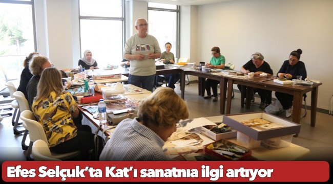 İki grup halinde toplam 55 kursiyerin katıldığı kat’ı sanatını Efes Selçuk Belediyesi desteğiyle bugüne kadar 7 kez düzenlediklerini belirten kat’ı sanatı eğitmeni Serdar Atalay; “Haftada iki gün çalışıyoruz. Selçuk Efes Kent Belleği’nde, 8 Eylül Selçuk’un Düşman İşgalinden Kuruluş gününde düzenlenen Efes Festivalinde açık hava sergilerimizi açtık, yapılan sanat eserlerini sergiledik. Amacımız İzmir’in başka noktalarında da sergilerimizi açmak” dedi.