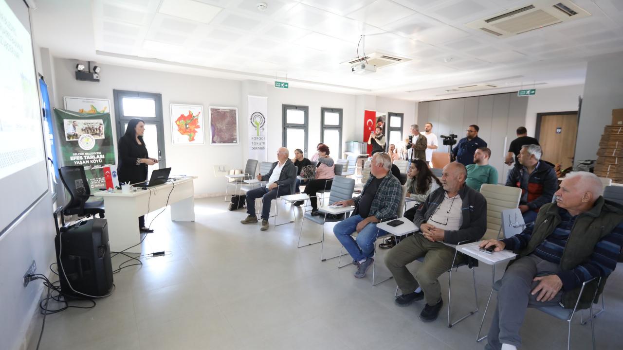 İzmir Büyükşehir Belediyesi Toprak Analiz Laboratuvarı Sorumlu Ziraat Yüksek Mühendisi Dr. Ayşen Duman, toprak verimliliğini artırmak amacıyla düzenlenen eğitimde İzmir’deki tarımsal alanların durumu, İzmir Büyükşehir Belediyesi Tarımsal Hizmetler Müdürlüğü’nün verdiği hizmetler, toprak analizinin önemi başlıkları altında bilgi verdi.