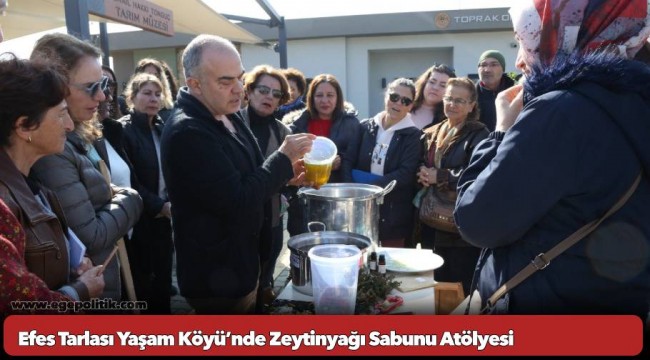 Efes Selçuk ve çevresinde sıklıkla yapılan zeytinyağı sabunu ile ilgili düzenlenen atölyede katılımcılar bilinen yöntemlerin yanı sıra doğru yöntemlerle zeytinyağı sabunu yapım süreci hakkında bilgi edindiler.
