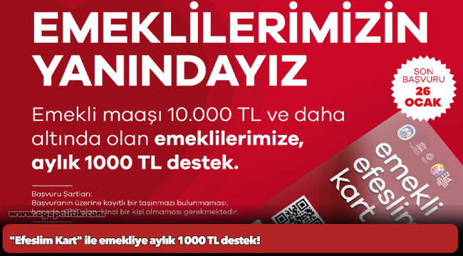 Destekten yararlanmak isteyen emekliler 26 Ocak tarihine kadar Efes Selçuk Belediyesi Sosyal Yardım İşleri Müdürlüğü’ne başvurabilecek. Başvuru şartlarında; kişinin üzerine kayıtlı bir taşınmazı bulunmaması, hanede geliri olan ikinci bir kişinin olmaması aranmaktadır.