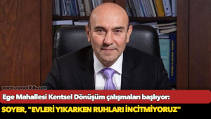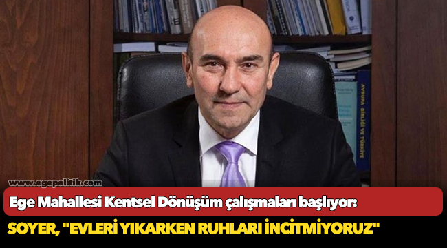 İzmir Büyükşehir Belediye Başkanı Tunç Soyer, Ege Mahallesi’nde yapılacak olan kentsel dönüşüm ile ilgili, “Evleri yıkarken ruhları incitmiyoruz” diye konuştu.