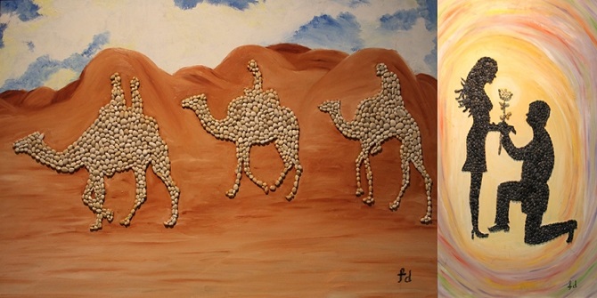 Tuval üstüne karışık teknikle yapılan barış ve doğa temalı tabloları sanatseverlerin beğenisine sunan Fikret Doğan, çalışmalarını Mordoğan ve Karaburun’dan topladığı deniz taşlarıyla yaptığını söyledi. Doğan, “Kullandığım taşlar kendi renkleri, farklı renk kullanmadım. Yağlıboya zemin üstüne taşları yapıştırıcıyla yapıştırıp cilaladım. Çalışmalarda ‘Barış ve Özgürlük’ temasını işlemeye çalıştım. Günümüzde belki de en çok ihtiyaç duyduğumuz şey barış ve sevgi” dedi.