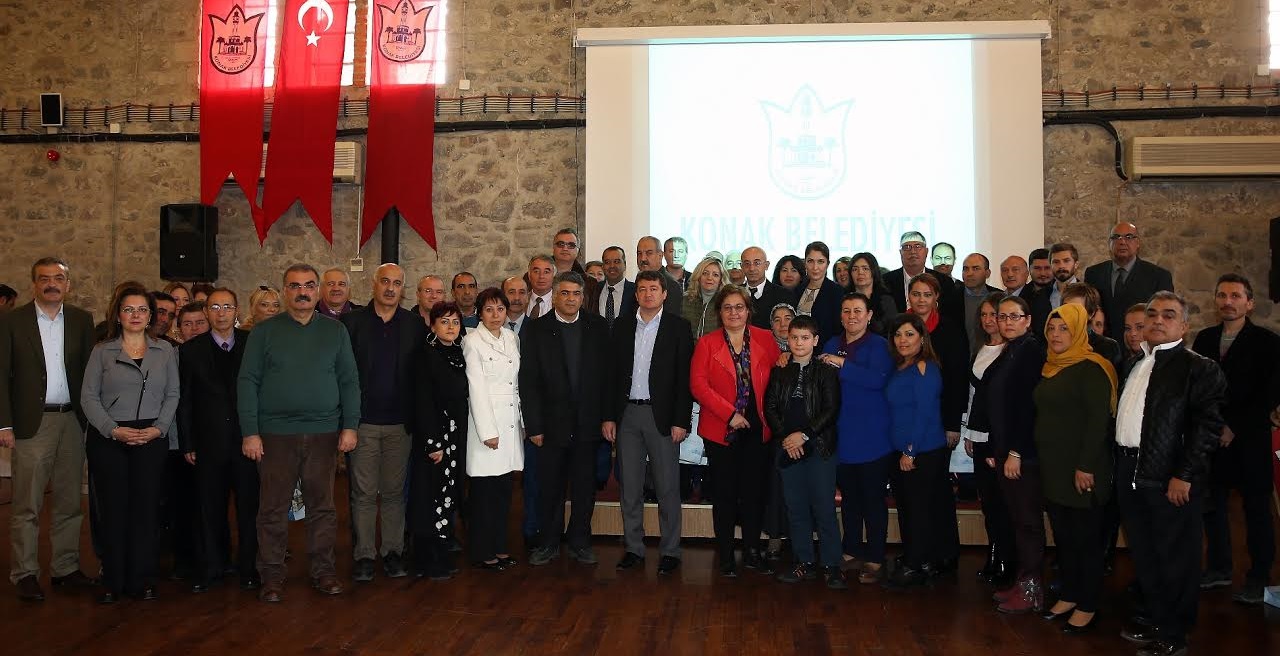 İlçede görev yapan ortaokul müdürleri ve okul aile birliği üyeleriyle bir araya gelen Konak Belediye Başkanı Sema Pekdaş'a eğitimciler verilen hizmetlerden ötürü teşekkür etti.