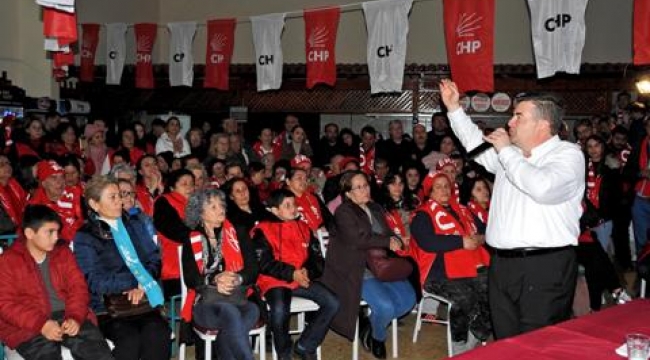 Mahalle toplantısına katılan CHP Çeşme İlçe Başkanı Sait Kavasoğulları ile Millet İttifakı'nın ortağı İYİ Parti'nin İlçe Başkanı Volkan Evci de el ele tutuşarak mahallelileri selamladılar.