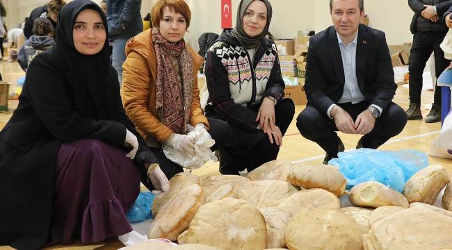 PİŞİRİLEN EKMEKLER GENÇLER VE BABALAR TARAFINDAN YARDIM TOPLAMA MERKEZLERİNE TAŞINIYOR