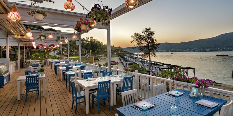 Özenle ve en taze malzemelerle hazırlanan, her biri kendine özgü baharat ve soslarla zenginleştirilmiş yemekler, Ege Denizi manzaralı şık restoranlarda konaklama deneyiminize ayrı bir tat katıyor.