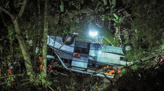 Endonezya'da dini bir ortaokulun öğrencileri, velileri ve öğretmenlerini taşıyan otobüs, okul gezisi dönüşünde kaza yaptı.