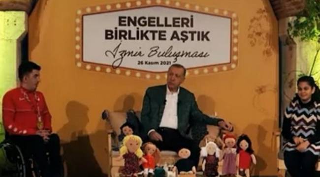 Erdoğan'ın İzmir ziyaretinde, Menemen ilçesindeki Tarihi Taşhan Çarşısı'nda katıldığı 'Engelleri Birlikte Aştık - İzmir Buluşması'nın görüntüleri paylaşıldı.