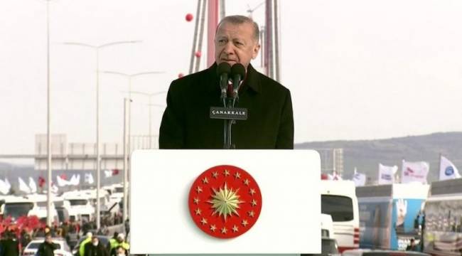 "1915 Çanakkale Köprüsü'nü büyük ecdada ithaf ediyoruz. Bunlar hep aşktır ve aşk kişinin sevdiğinde yok olmasıdır. 1915 Çanakkale Köprüsü'nün ülkemize milletimize şehrimize tüm insanlığa hayırlı olmasını diliyorum. Bu köprümüz de tıpkı 15 Temmuz Şehitleri köprüsü, Fatih Sultan, Yavuz Sultan Köprüsü, Marmaray, Avrasya Tüneli ve şimdi de işte burada Çanakkale'de 6. köprüyü açıyoruz. 140 yıl önce Sultan Abdulhamit Han o köprülerin eskiz çalışmalarını yapmıştı.