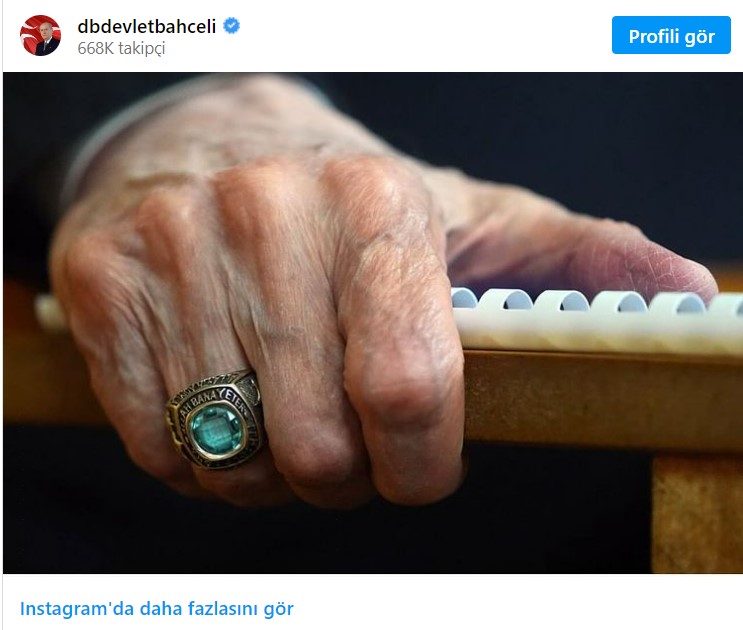 Bahçeli, yüzüğünün yer aldığı fotoğrafı kişisel Instagram hesabından da paylaştı.