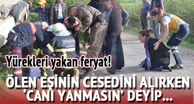 Kazayı haber alıp olay yerine gelen Tutku Durmaz’ın, aracın altında kalan ölen eşi için, ''Canı yanmasın çıkartırken dikkat edin'' diye bağırması yürek burktu.