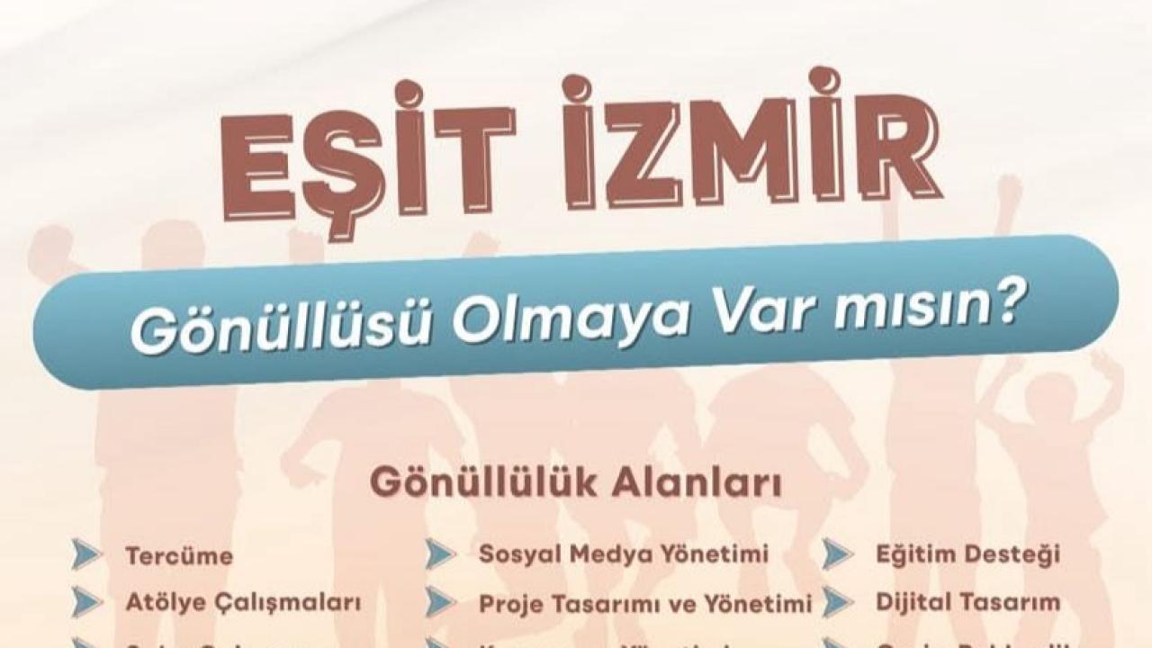Kadınların ve kız çocuklarının güçlenmesi ve toplumsal cinsiyet eşitliğinin sağlanması için Eşit İzmir projesini başlatan İzmir Büyükşehir Belediyesi, kentte toplumsal cinsiyet eşitliği dayanışmasını pekiştirmeyi amaçlıyor. 18 yaş üzeri gönüllülere ulaşmayı hedefleyen projeye katılmak için https://