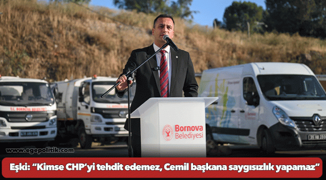 Kendisinin de sendikacı bir geçmişe sahip olduğunu ifade eden Başkan Eşki, DİSK Ege Bölge Temsilcisi Memiş Sarı’nın “Ailelerimizle birlikte 500 bin kişiyiz, biz Hamza Dağ’a oy versek o kazanırdı” ifadelerine işaret ederek; “Grev sürecine büyük saygım var. Elbette işçinin, emekçinin hakkını savunması ve mücadele etmesi çok doğaldır. Grev hukuki ve demokratik bir süreçtir ve bu sürece sadece saygı duyabiliriz. Ancak hiç kimse CHP’yi tehdit edemez. Hiç kimse işçileri ve ailelerini adeta bir koyun gibi görüp, ‘Ben nereye istersem oraya oy verirler’ diyemez. Üyeleri üzerinden; ‘Ben istersem burası, istemezsem orası kazanır’ gibi ucuz söylemlerle kontrolü altında tuttuğunu söyleyemez. Bu tehditkâr ve hadsiz tavrı kınıyorum. Bayrama girerken İzmir’de çöp dağlarından medet umanlara İzmir halkı ve CHP gerekli cevabı verecektir” diye konuştu.
