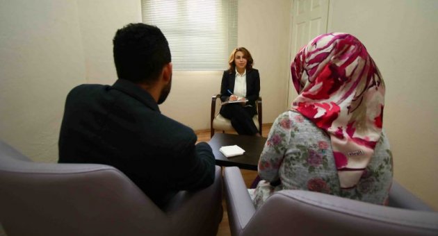 En çok evlilik sorunları, eşler arasındaki iletişim problemleri ile ilgili başvurunun alındığı merkezde, kadınlar eşleriyle de beraber sorunlarının çözümünü için başvuruda bulunabiliyor. “Evlilikte sorun yaşamamak değil, sorunlarla başa çıkabilmek önemlidir” noktasından hareketle yola çıkan psikologlar, evlilik çatışmaları ve çözüm yolları konusunda danışmanlık veriyor.