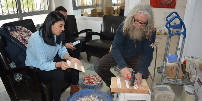 Mozaiğe başlamadan önce yaptığı çalışmadan bahseden Ekin, “Bir Atatürk çalışması yapacağız. Bir Türk bayrağı, okulun amblemi ve Atatürk’ün eski maskını kullanacağız ama daha çağdaş ve farklı bir çalışma olacak. Bu çalışma İspanyol mimar Gaudi’nin çalışmalarından esinlenilerek gerçekleştirilecek ve iki kişi çalışacağız. Yaklaşık 1-2 günde bitireceğimi düşünüyorum” sözlerine yer verdi. Prof. Dr. Engin Berber’le bu çalışma için bir araya geldiğini söyleyen Erman, Kuşadası’ndaki bir müze yapımında beraber çalıştıklarından söz etti.