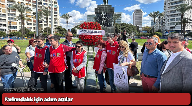 İzmir Büyükşehir Belediyesi’nin desteğiyle İzmir Otizm Orkestrası ve Korosu, Mavi Işık Özel Eğitim ve Rehabilitasyon Merkezi, KEDİ Otizm Derneği, ODER Otizm Derneği, Urla Otizmle Yaşam Derneği, Otizm Federasyonu ve Nar Taneleri Derneği’nin yer aldığı İzmir Otizm Topluluğu, Otizm Farkındalık Haftası nedeniyle “Farkındalık için Adım At” etkinliği düzenledi. Otizmli bireyler ve ailelerinin yaşadığı sorunların anlatıldığı ve bu kapsamda taleplerin yinelendiği etkinlikte Gündoğdu Meydanı’nda toplanılarak Vosvos korteji eşliğinde Cumhuriyet Meydanı’na yüründü. Yürüyüşte, çok sayıda vatandaş ellerinde dövizler taşıyarak sloganlar attı. Etkinlikte Cumhuriyet Meydanı’nda yer alan Atatürk Anıtı’na çelenk sunulurken, kurulan sahnede İzmir Otizm Orkestrası ve Korosu, Sıradışı Çocuklar ve otizmli çocuklar ile gençlerin solo konserleri verildi. Ayrıca İzmir Büyükşehir Belediyesi Sosyal Hizmetler Dairesi Başkanlığı Engelli Çalışmaları Şube Müdürlüğü’nde görevli spor ve dans eğitmeni Ayşen Yersel eşliğinde dans gösterisi yapıldı.