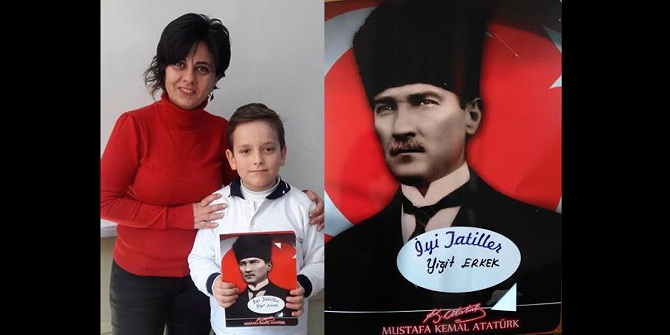 Karabağlar'da bulunan NECİP FAZIL KISAKÜREK İLKOKULU'na giden küçük öğrencilerde karne sevinci yaşadı. 3.Sınıf öğretmeni FATMA SÖNMEZ öğrencilerine bu yıl karnelerinde süpriz yaptı. Bu yıl ilk kez ön yüzü ATATÜRK resmi, arka bölümde İstiklal Marşı satırları bulunan karneleri öğrencilerine törenle vererek büyük süpriz yaptı. Karnelerini ATATÜRK resmiyle görünce büyük sevinç yaşayan öğrenciler, öğretmenleri FATMA SÖNMEZ'e teşekkür ettiler. Öğrenci velileri de aynı şekilde ATATÜRK süprizi yapan FATMA SÖNMEZ'e memnuniyetlerini dile getirip teşekkür ettiler. Karnelerini alan öğrenciler, öğretmenleri, anneleri babaları ve birbirleriyle bol bol resim çekildiler.