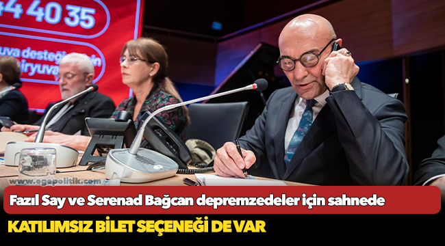 Dünyaca ünlü piyanist ve besteci Fazıl Say ve solist Serenad Bağcan 4 Mart’ta depremzedeler yararına İzmir'de sahne alacak. İzmir Büyükşehir Belediyesi'nin ev sahipliği yapacağı yardım konserinin gelirinin Bir Kira Bir Yuva kampanyasına aktarılacağını söyleyen Başkan Tunç Soyer, “Gelin yaraları birlikte sarmaya devam edelim. Konsere gitmeseniz de bilet alarak destek olun” dedi.