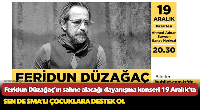 İzmir Büyükşehir Belediyesi kalıtsal kas hastalığı SMA hastalarının tedavilerine destek olmak amacıyla 19 Aralık’ta Feridun Düzağaç dayanışma konseri düzenliyor. Konserin geliri, hastalığın çok pahalı olan tedavisi için kullanılacak. Konsere gidemeyecek olanlar da katılımsız bilet satın alma seçeneğiyle bu dayanışmaya katkıda bulunabiliyor.