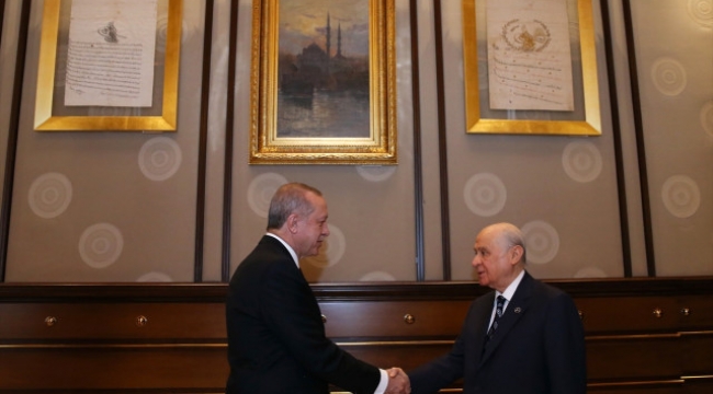 Cumhurbaşkanı Recep Tayyip Erdooğan ve MHP Genel Başkanı Bahçeli Beştepe'de bir araya geldi. Planlandığı gibi saat 13.30'da başlayan görüşme 30 dakika sürdü.